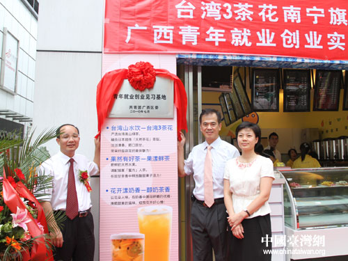 中國(guó)臺(tái)灣網(wǎng)7月19日南寧消息 7月17日,臺(tái)灣3茶花南寧旗艦店開(kāi)業(yè)暨廣西青年就業(yè)創(chuàng)業(yè)實(shí)習(xí)基地掛牌儀式在南寧舉行,這是共青團(tuán)廣西區(qū)委在臺(tái)資企業(yè)設(shè)立的第一個(gè)青年就業(yè)創(chuàng)業(yè)實(shí)習(xí)基地,也是不久前廣西自治區(qū)黨委書(shū)記郭聲琨率大型經(jīng)貿(mào)文化代表團(tuán)赴臺(tái)交流后落實(shí)的第一個(gè)成果。共青團(tuán)廣西區(qū)委、廣西青年聯(lián)合會(huì)、廣西臺(tái)辦、南寧市臺(tái)辦等有關(guān)部門(mén)代表及部分廣西青年企業(yè)家和大學(xué)生代表出席儀式。