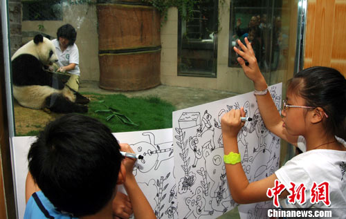 10月10日,福州熊貓世界迎來了來自臺灣臺南、南投等地的12位小朋友,他們很高興的現(xiàn)場畫起了“巴斯”當(dāng)日,來自兩岸的小朋友、著名畫家在福州熊貓世界齊繪可愛的熊貓。