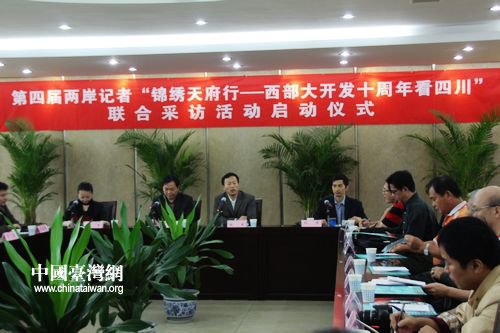 10月18日上午,第四屆兩岸記者“錦繡天府行——西部大開發十周年看四川”聯合采訪活動在成都市正式啟動。(中國臺灣網 馬迪 攝)