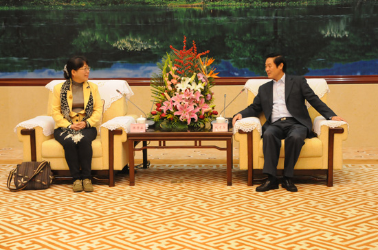 中共四川省委書(shū)記劉奇葆會(huì)見(jiàn)應(yīng)邀請(qǐng)來(lái)訪的臺(tái)灣長(zhǎng)青村敬老院負(fù)責(zé)人陳芳姿 (李華軍攝)