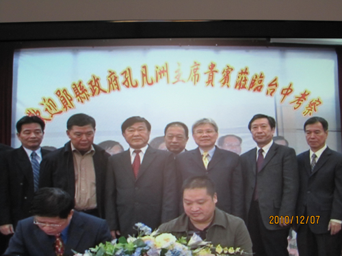 在臺期間,考察團先后拜會了湖北同鄉會鄖縣籍臺胞詹家香、馬顯宗等先生、臺灣省糕餅商業同業公會 、實地考察了阿里山茶葉協會、臺灣愛之味股份有限公司、永全食品器具有限公司、臺灣糕餅食品加工有限公司、臺北石材加工工業總會等。在與這些企業負責人進行了座談交流的同時,鄖縣副縣長張毛字與臺灣豐榮食品有限公司簽訂了1億元的休閑食品加工協議、同臺北石材加工工業總會簽訂了2000萬元的大理石深加工投資協議,同嘉義縣木瓜酵素企業達成了協議性投資商榷,同時邀請該公司董事長吳先生擇日來湖北鄖縣考察木瓜深加工投資項目。(胡德鮮)