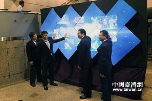 許又聲、蔡紹中、呂煥斌、馬詠睿共同為湖南電視節(jié)目在中天電視臺展播啟幕。(中國臺灣網(wǎng)發(fā) 康衡 攝)