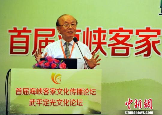 中華海峽兩岸客家文經交流協會秘書長、臺灣世新大學教授黃肇松作了題為“加大定光文化傳播,推動客家文化遠播”的主旨演講。 張斌 攝