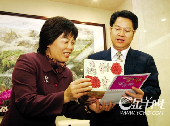 羊城晚報訊(文聰) 昨日上午,東莞市委書記劉志庚和副市長江凌分別收到了兩張充滿童真童趣的新年賀卡,這份由小朋友們親手制作的禮物讓他們覺得很溫暖。江凌不僅盛贊東莞臺商子弟學校的“成人禮”傳承了中華民族的傳統美德,而且還建議教育部門在東莞本地的學校中選取試點,推廣該儀式。