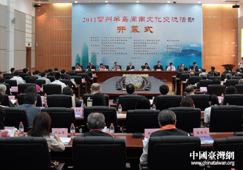 中國臺灣網11月3日湛江消息 11月3日上午,主題為“傳承閩南文化,促進湛臺合作”的2011雷州半島閩南文化交流活動在廣東湛江師范學院舉行開幕儀式。廣東省臺辦副主任蔣長芳、湛江市政府副市長陳岸明、湛江市政協副主席黃雪艷,和來自臺灣、廣東、北京等地的專家學者、企業家等共160多人參加了開幕式。
