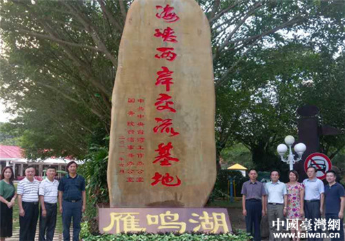 圖為韶關(guān)市委臺(tái)辦文火山主任(左三)和梅州市委臺(tái)辦吳壽康主任(左四)在海峽兩岸交流基地示范點(diǎn)——梅縣區(qū)雁鳴湖旅游度假村。右四為韶關(guān)市委臺(tái)辦羅哲春副主任,右五為梅州市臺(tái)辦孔國(guó)泉副主任,左二為梅縣區(qū)臺(tái)辦李順華主任。