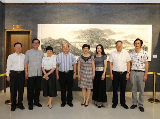 合影留念。(右四:市政協(xié)張麗萍主席,右二:市政協(xié)李衍楠副主席,左四:市政協(xié)何偉強副主席,左三:市政協(xié)何安瓊秘書長,左二:學習文史鄒國忠主任,左一:市臺辦謝昉柱主任,右一:市美術(shù)館葉國強館長)