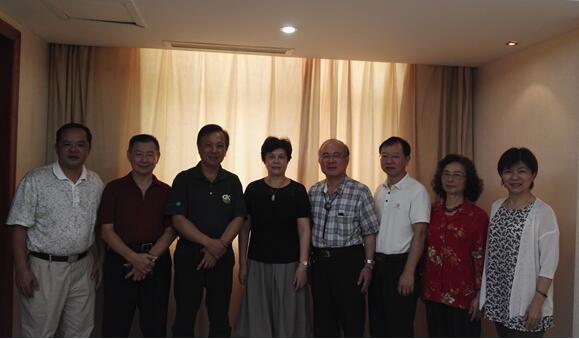 市政協(xié)張麗萍主席(左四)會見林金田先生(右四)、葉杰生先生(左三)、羅臺生先生(左二)。