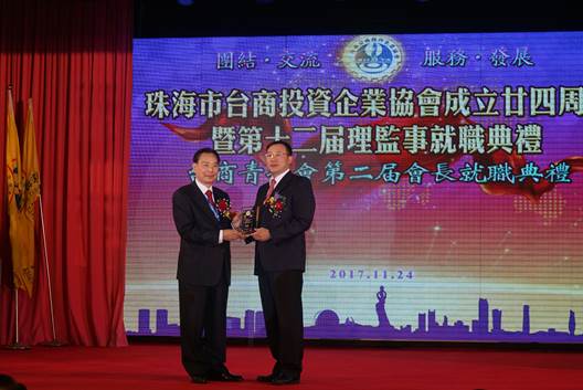中國臺灣網(wǎng)11月30日珠海訊 珠海臺商投資企業(yè)協(xié)會2017年11月24日在珠海市度假村酒店舉行協(xié)會成立24周年慶典暨第12屆理監(jiān)事就職典禮,第十一屆會長葉飛呈連任新一屆會長;前海協(xié)會會長陳云林、前海基會董事長江丙坤、澳門中聯(lián)辦臺務部部長徐莽、海協(xié)會駐澳辦主任楊流昌、廣東省臺辦副主任方濤、市委常委統(tǒng)戰(zhàn)部部長郭才武等領導和嘉賓近700人出席了慶典活動。