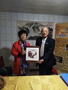 市鄉(xiāng)情聯(lián)誼交流團(tuán)拜訪中華臺(tái)灣潮汕同鄉(xiāng)總會(huì)并向李南賢會(huì)長贈(zèng)送紀(jì)念品。
