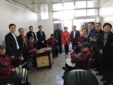 臺(tái)中市潮州同鄉(xiāng)會(huì)鄉(xiāng)親現(xiàn)場演奏潮樂熱烈歡迎市鄉(xiāng)情聯(lián)誼交流團(tuán)到訪。