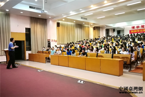 吳偉雄主持講座。邱樂偉結合黨的十九大報告、習近平新時代中國特色社會主義思想和習近平總書記對臺工作重要思想作報告,講座貫穿“始終牢記使命,致力偉大復興”這一主題,詳細解讀了黨的十九大精神以及習近平總書記對臺工作重要思想;介紹了臺灣歷史紀事和人文風情等,用充分的歷史事例闡述了祖國寶島臺灣自古就是中國領土的歷史事實;講述了《習近平談治國理政》主要思想和《習近平七年知青歲月》的故事。講課現場進行了互動環節,邱樂偉認真回答了學生有關赴臺學習交流的注意事項、臺灣有關政黨情況、臺灣旅游文化情況等系列提問。通過講座,同學們拓寬了視野,增長了知識,思考更進一步,激勵了廣大青年的愛國激情,增強了共同致力于中華民族偉大復興的使命感。