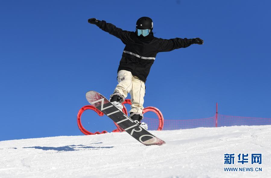 1月4日,滑雪愛好者新疆阿勒泰市將軍山滑雪場滑雪。新華社記者 沙達提 攝