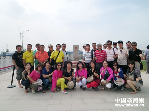 臺(tái)中參訪團(tuán)一行與324號(hào)界碑合影。(中國(guó)臺(tái)灣網(wǎng) 馬一娜 攝)