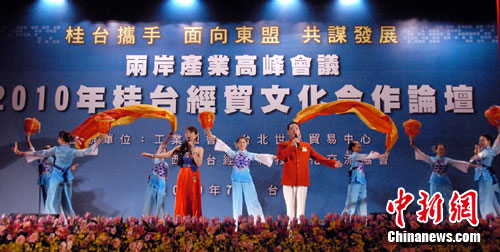 中共廣西壯族自治區(qū)委員會(huì)書記郭聲琨率領(lǐng)1000余人的廣西經(jīng)貿(mào)文化代表團(tuán)7月1日—7月5日在臺(tái)灣參訪,這是海峽兩岸經(jīng)濟(jì)合作框架協(xié)議(ECFA)簽署后大陸第一個(gè)赴臺(tái)的經(jīng)貿(mào)文化代表團(tuán)。客家人聚居的廣西賀州市也由市委書記彭曉春率賀州代表團(tuán)隨廣西團(tuán)一起赴臺(tái)。7月3日下午,由桂臺(tái)(賀州)客家文化旅游合作示范區(qū)與臺(tái)灣世界客屬總會(huì)、廣西同鄉(xiāng)會(huì)聯(lián)合主辦的桂臺(tái)(賀州)客家文化旅游經(jīng)貿(mào)合作懇談會(huì)在臺(tái)北舉行。