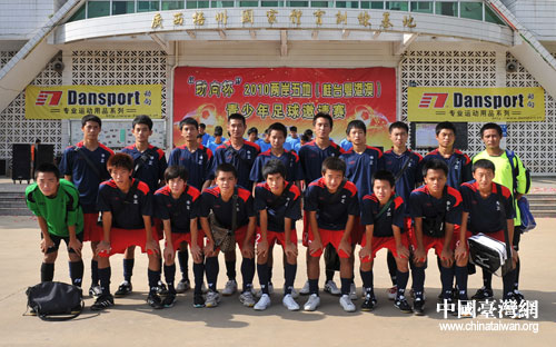 8月11日,“動向杯”2010兩岸五地(桂臺粵港澳)青少年足球邀請賽,在廣西梧州國家體育訓練基地開賽。來自臺灣寶島的高雄市立中正高工足球隊(甲組),成為這次邀請賽的焦點。(中國臺灣網(wǎng)發(fā) 廣西臺辦通訊員孟亞西 攝)