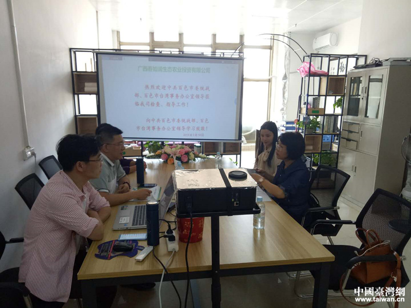 中國臺灣網5月13日百色訊 5月10日,廣西百色市臺辦主任黃嶺瑩到右江區臺資企業廣西春如潤生態農業投資有限公司調研,企業董事長郭文欽向黃嶺瑩一行介紹了“學府天街臺灣美食城”項目投資計劃,將吸引臺商共同發展。