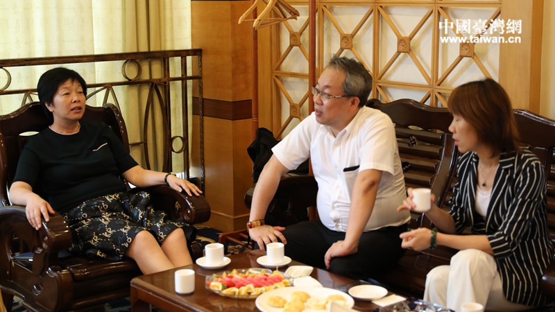賀州市委常委、統(tǒng)戰(zhàn)部部長唐敬春(左一)與臺灣兩岸青年農(nóng)業(yè)交流總會理事長張茂林(中)會談。(圖片來源:廣西賀州市臺辦)