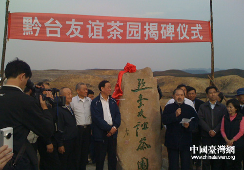 臺灣中華茶文化學會理事長范增平先生參加黔臺友誼茶園揭牌儀式(貴定縣臺辦 楊玉霞 攝)