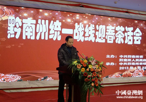茶話會由州委常委、州委戰線部部長羅桂榮主持,州委副書記吳勝華致辭,并通報全州2012年經濟社會各項指標完成情況和2013年經濟社會計劃安排情況。臺胞臺商臺屬代表鄧雪松代表發言。