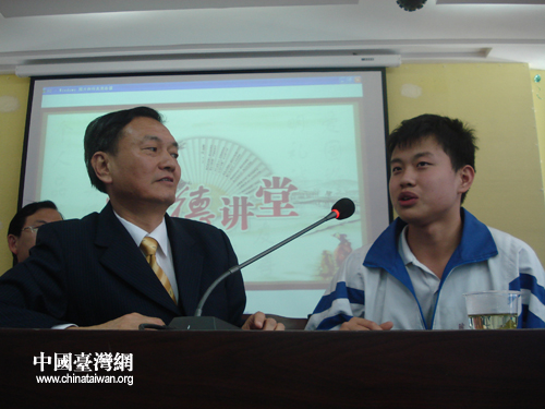 王毅明先生與六盤水市實(shí)驗(yàn)一中學(xué)生互動(dòng)。(圖片來(lái)源:六盤水市臺(tái)辦)