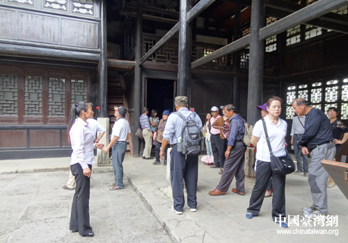 導游在向參訪團介紹劉氏家族歷史。(孫政文 攝)