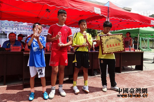中國臺灣網8月31日都勻消息 黔南·臺灣少數民族少年足球交流賽8月6日至7日在都勻市舉行,臺東豐里小學,都勻市第九小、十一小、楊柳街小學少年足球隊共四個隊參賽,進行循環賽。通過兩天的角逐圓滿閉幕。臺東豐里小學足球隊摘下桂冠。