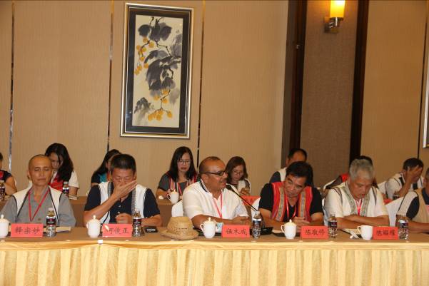 座談會上,兩岸少數(shù)民族代表苗栗縣泰安鄉(xiāng)民代表會副主席簡義成、中國國民黨花蓮縣秀林鄉(xiāng)黨部主任委員蔡瑞光、臺中市原住民族群總頭目蔣正仁、臺中勤益科技大學(xué)副教授伍木成、南投縣仁愛鄉(xiāng)清境小學(xué)原校長陳義隆,全國人大代表、貴州布谷鳥布依族民族文化風(fēng)情園董事長王菁、貴州苗藥集團(tuán)經(jīng)理嚴(yán)鵬、馬大姐食品有限公司董事長馬鈴鳳、納灰布依村支書馮子榮、南龍村支書田應(yīng)剛等分別作了交流發(fā)言。