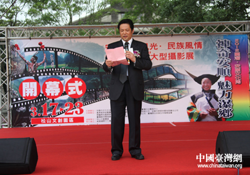 中國臺灣網(wǎng)3月22日臺北消息 日前,2012“安順·臺灣文化周暨貴州安順山水風(fēng)光—林藝斌360度大型攝影展”在臺北市松山文化創(chuàng)意園區(qū)隆重開幕。中國國民黨榮譽(yù)黨主席吳伯雄、臺灣“法務(wù)部門負(fù)責(zé)人”曾勇夫、臺灣民意代表孔文吉、國民黨中常委李德維、臺北市原副市長李永萍、臺灣日出藝術(shù)中心負(fù)責(zé)人林藝斌、臺灣貴州同鄉(xiāng)會理事長申玉玲以及臺灣經(jīng)濟(jì)、文化、旅游各界人士近200余人應(yīng)邀出席活動。