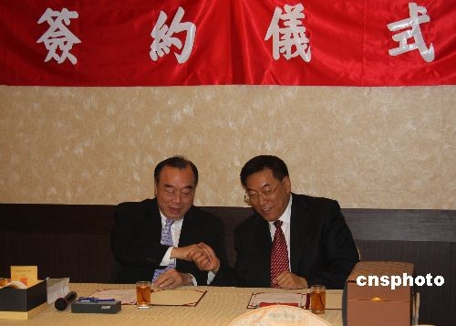 八日晚間,中華全國歸國華僑聯合會主席林軍在臺北“上海鄉村”與臺灣僑聯總會”理事長簡漢生分別用紅藍顏色的簽字筆,簽署了這份加強合作交流協議書。