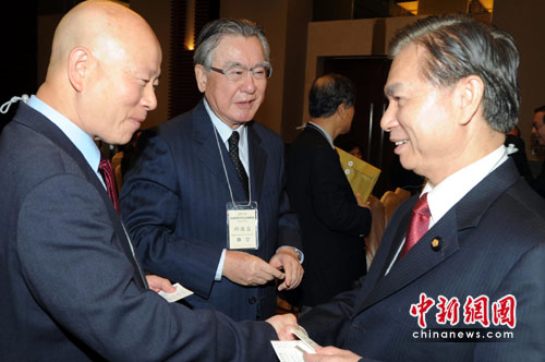 6月1日,劉盛良、邱進益、許信良(自右向左)等臺灣知名人士在香港出席“海峽兩岸與港臺關系” 研討會。中新社發 鄭祚聲 攝