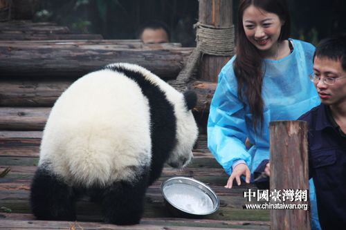 中國臺灣網(wǎng)10月20日成都消息 新近當選“熊貓守護使”的臺大美女模特王郁文在走馬上任之初便活動不斷。19日上午,王郁文出現(xiàn)在成都大熊貓繁育研究基地內(nèi)部,與熊貓來了一次“親密接觸”。