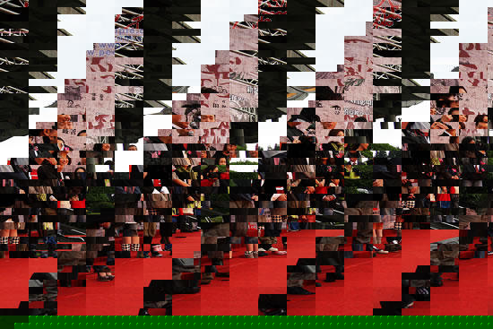 10月29日,《四世同堂》記者會上,導演田沁鑫率演員登臺亮相。(記者杜榕攝)