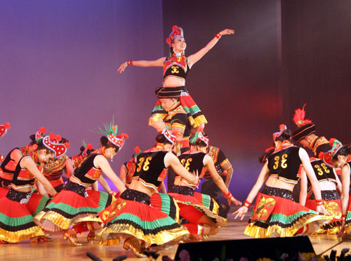 苗栗縣府邀請彝族自治區的涼山州歌舞團,1日、2日兩晚在苗栗縣文化局演出,并免費開放民眾欣賞,1日晚7時整,近百名團員、舞者輪番上陣,不僅有男女群舞、獨唱,還有彝族民間器樂演奏、川劇民俗表演、原生態演唱等,演出者不時還與臺下觀眾互動,氣氛熱絡。