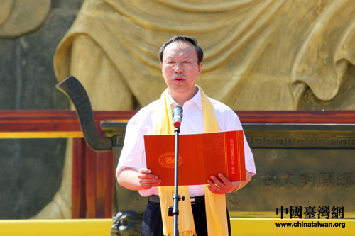 全國政協(xié)副主席、中央統(tǒng)戰(zhàn)部部長杜青林宣布第四屆海峽兩岸同胞涿鹿共祭中華三祖大典正式開始。(中國臺(tái)灣網(wǎng) 王偉 攝)