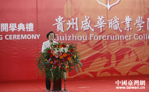 全國政協(xié)副主席、臺盟中央主席林文漪冒雨赴貴州省惠水縣出席貴州盛華職業(yè)學(xué)院開學(xué)典禮并發(fā)表講話。(中國臺灣網(wǎng)發(fā) 畢磊 攝)