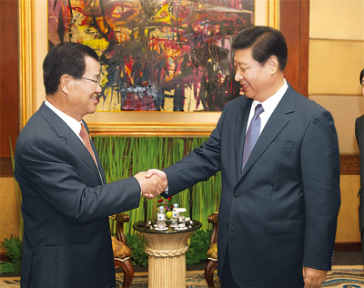 | 十月六日,中共中央總書記習(xí)近平在印度尼西亞巴厘島會(huì)見臺(tái)灣兩岸共同市場(chǎng)基金會(huì)榮譽(yù)董事長(zhǎng)蕭萬長(zhǎng)一行。 |