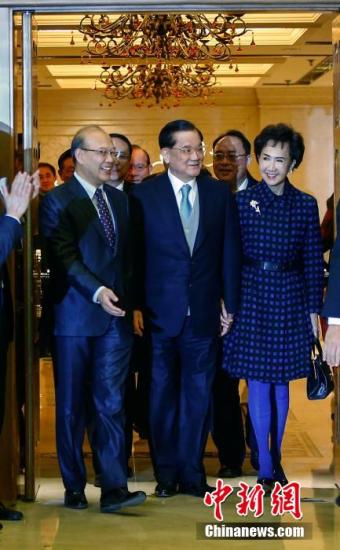 2月19日,北京大學(xué)為中國國民黨榮譽主席連戰(zhàn)舉辦名譽教授授予儀式,完成該校2005年頒贈名譽教授給連戰(zhàn)的程序。圖為北大校長王恩哥(左)陪同連戰(zhàn)夫婦入場。中新社發(fā) 張浩 攝