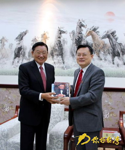 李守信書記(右)歡迎江丙坤先生來校訪問(你好臺灣網(wǎng) 圖)