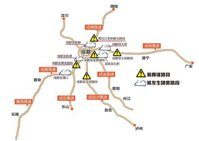 易擁擠路段:成渝高速成都至龍泉湖路段。