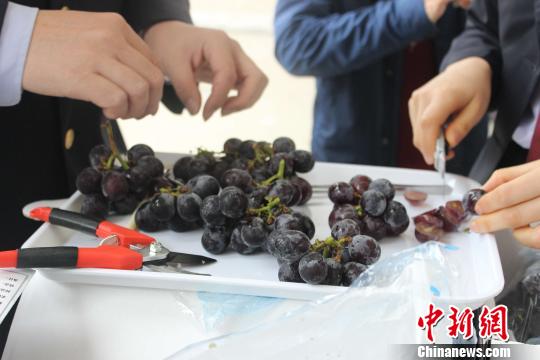 中新網(wǎng)廈門1月5日電 (蔡炳江 許斯龍)2016年伊始,一批總重4.1噸,貨值1萬多美元的臺灣巨峰葡萄5日由廈門東渡檢驗檢疫局檢驗檢疫放行,正式投入市場。