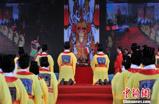 中新網福州3月6日電 (林春茵 劉可耕 王光華)6日,兩千名海內外信眾齊聚閩江畔的福州倉山江心公園,共同祭拜臨水夫人陳靖姑。臺灣臺南圣恩佛祖會會長盧友禮率28個臺灣宮廟代表執事禮拜,為第九屆閩臺陳靖姑民俗文化旅游節拉開帷幕。