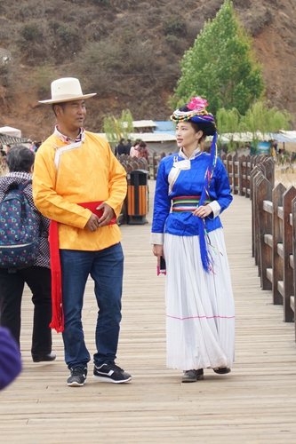 摩梭文化中,最吸引人的就是“走婚”文化。作為走婚文化的見證,橫跨草海的“走婚橋”造型優美。作為約會之地,白天看對眼的“阿夏”(男性對女情人的稱呼)“阿注”(女性對男情人的稱呼)們,趁夜幕降臨往來于“走婚橋”,留下一段段甜蜜愛情故事。乘著豬槽船,在廣闊的草海中聽著甜蜜情歌,摩梭人的愛情著實羨煞了我們。