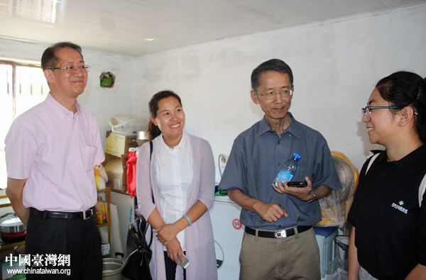 滕鴻年(左一)、吳國禎(右二)與克旗團委書記郭玉玲(左二)到張穎家中走訪。(中國臺灣網 王思羽 攝)