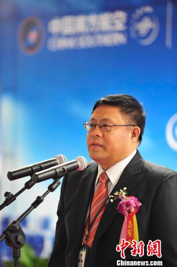圖為中國南方航空公司海南分公司總經(jīng)理劉國軍在儀式上致辭。 駱云飛 攝