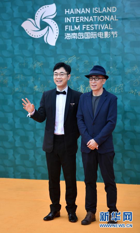 12月12日,演員大鵬(左)、導(dǎo)演曹保平亮相電影節(jié)紅毯儀式。新華社記者 郭程 攝