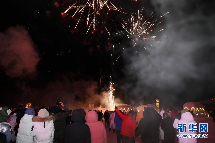 2021年1月1日凌晨,游客在黑龍江省漠河市北極鎮(zhèn)北極村參加跨年活動(dòng)。新華社發(fā)(王景陽 攝)