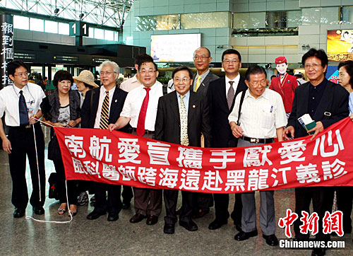 7月13日,臺灣愛盲協(xié)會13位醫(yī)師愛心人士組成的醫(yī)療團,從臺灣桃園機場乘坐中國南方航空公司臺灣分公司免費提供的航空服務(wù),前往黑龍江省,在7天時間里為哈爾濱、齊齊哈爾等地350名貧困白內(nèi)障人士實施手術(shù)并贈送優(yōu)質(zhì)人工水晶體,使患者重獲光明。中新社發(fā) 宋吉河 攝