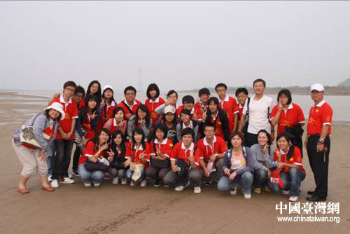 營員們在黃河灘合影留念。圖片來源:河南省臺辦