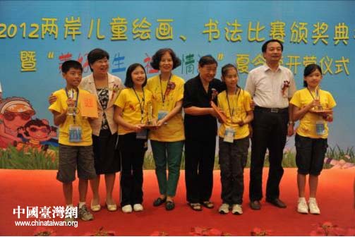 中國臺灣網8月9日鄭州消息 8月8日上午,“2012兩岸兒童繪畫書法比賽”頒獎典禮暨2012兩岸兒童“美好人生·祖孫情深”夏令營活動開營儀式在鄭州舉行。河南省委統戰部副部長、省工商聯黨組書記楊京偉,河南省臺辦副主任杜春景參加頒獎典禮并為獲獎選手和單位頒獎,河南省宋慶齡基金會主席劉玉潔與臺灣財團法人純青社會福利基金會執行長張琛惠為夏令營授營旗。